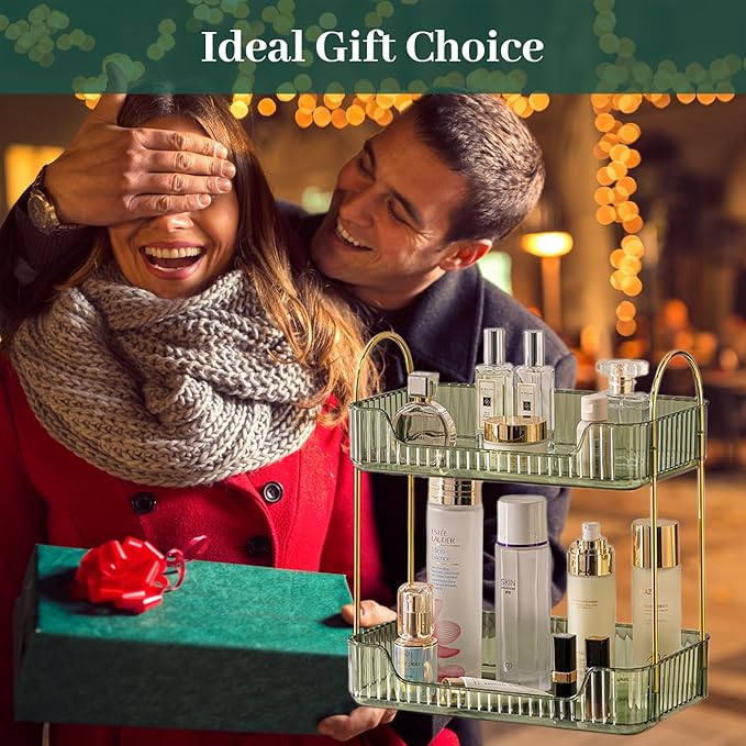 Aveniee Bathroom Counter Organizer, 2 Tier Perfume Skin Care Countertop Storage Shelf, Vanity Makeup Tray for Cosmetic Skincare Lotion,Green