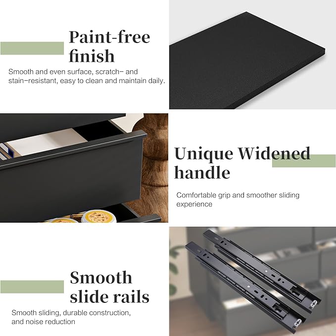 - 【Sturdy and long-lasting】Crafted with premium MDF wood and robust metal glides, this modern dresser for bedroom ensures long-lasting use without deformation. The thickened top is scratch-resistant, waterproof, and easy to clean, while the dampened base provides excellent stability. Each drawer is supported by high-quality metal glides, ensuring smooth and noise-free operation. A safety anti-tip kit is also included for extra security
