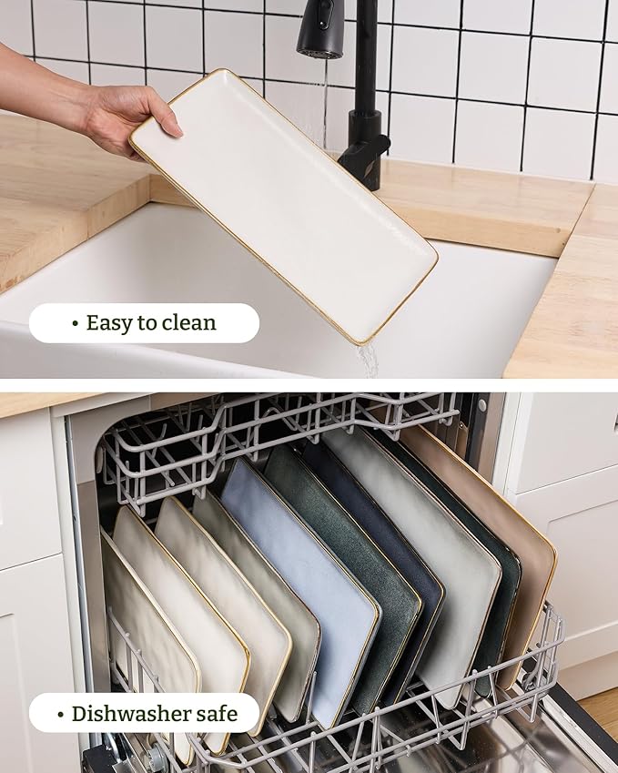 - Dishwasher and Microwave Safe: Famiware rectangle plates are made of premium stoneware. Each serving platters and trays is Dishwasher and microwave safe.