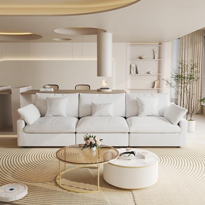 Cloud Couch Modular Sectional Sofa,119.2" 3Seater Wide Couch,Down Filled Convertible Living Room Set, Covers Washable&Replaceable,White