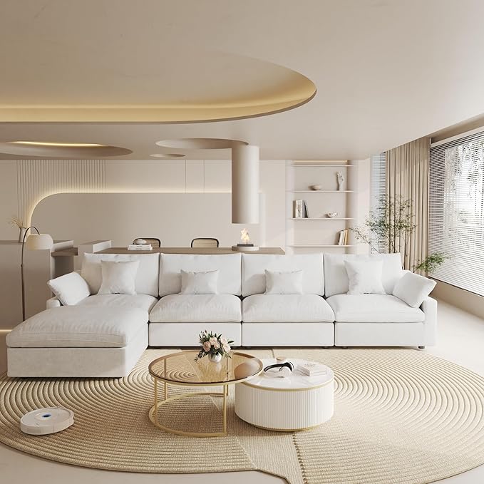 Cloud Couch Modular Sectional Sofa,156" L Shaped Couch, Oversized Down Filled Convertible Wide Seater,4 Seater with Ottoman for Living Room Set, Covers Washable&Replaceable,White