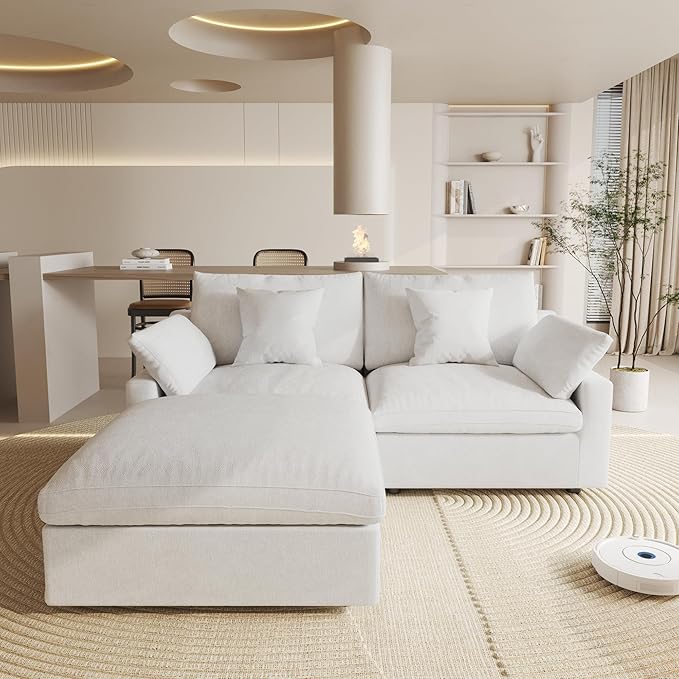 Cloud Couch Modular Sectional Sofa,82.68" L Shaped Couch,Down Filled Convertible Wide Seater, 2 Seater+Ottoman for Living Room Set,Covers Washable&Replaceable,White