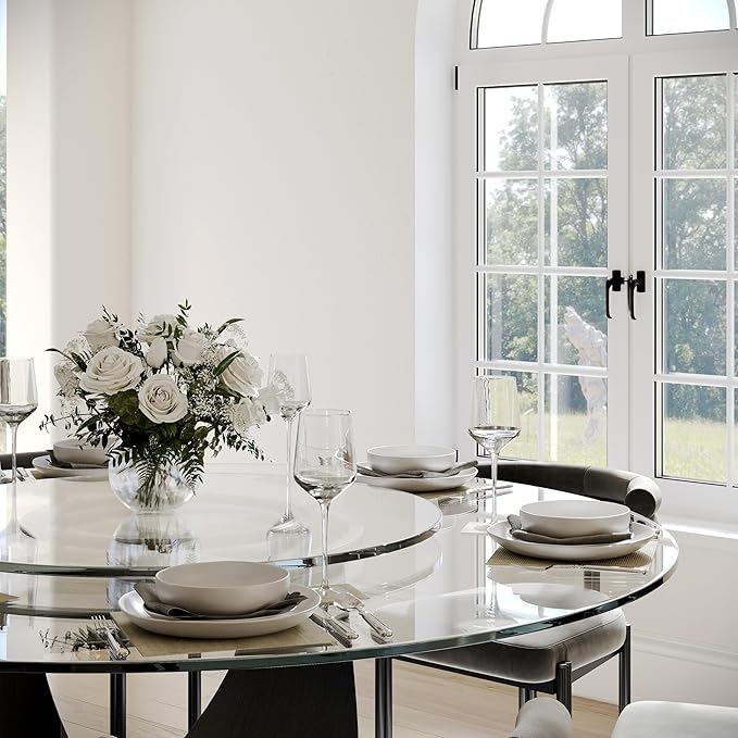 - Premium Exquisite Glass Dining Table: POVISON tempered glass tabletop features a flat edge design, the tabletop is 6mm thick and has been flat-polished for a clean and elegant look. The glass material has been specially heat-treated to make it long-lasting, impact-resistant and scratch-resistant. POVISON black glass round dining table adds class to any setting, providing a unique and sophisticated look wherever it is placed