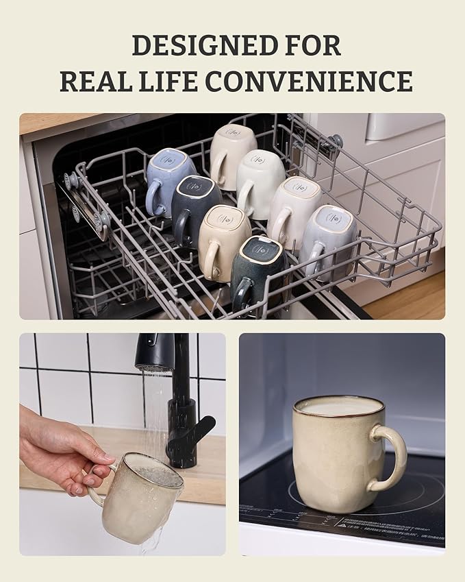 - 【Dishwasher and Microwave Safe】 Famiware Stoneware coffee cups for the kitchen are made of premium stoneware. Each plate and bowl is dishwasher and microwave safe
