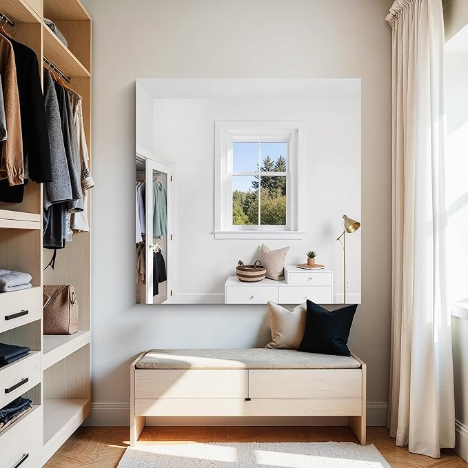 KOCUUY Large Frameless Mirror, 42x42 Inch Square Bathroom Vanity Mirror for Over Sink, Upgraded Shatterproof Unframed Design for Bedroom, Living Room, Entryway