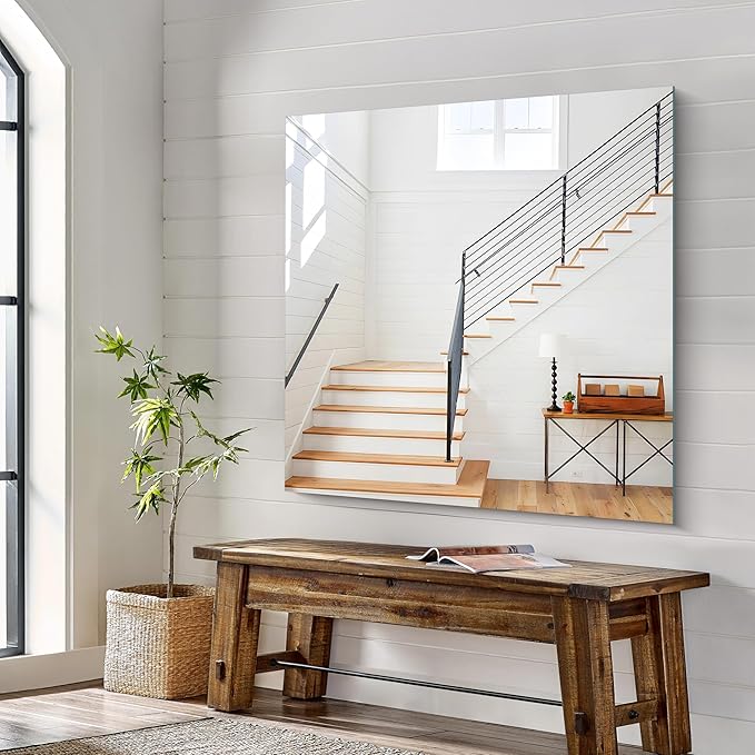 - EASY TO INSTALL AND SAFE PACKAGING : The packaging of this mirror without frame is well-designed and safe, with all-round protective Styrofoam and has passed the drop test. Don't worry about breakage. All of KOCUUY's rectangle mirrors can be hung horizontally or vertically. Super easy to install. Installation guide and screw bag are included in the package