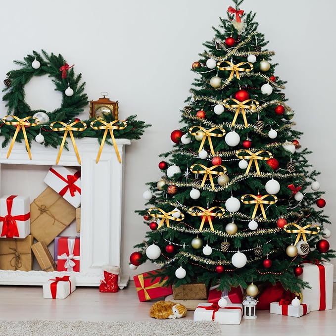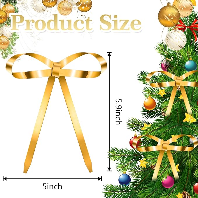 - Metal Bow Design: our metal bow designed with lovely bowknot shapes; The golden finish of the bow not only showcases a stylish glow but also blends cuteness with sophistication, effortlessly adding a touch of elegance to your Christmas