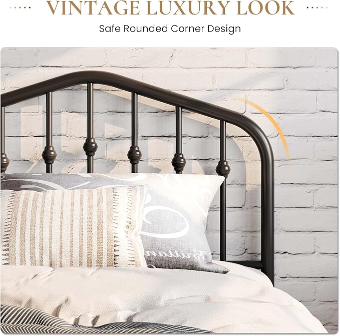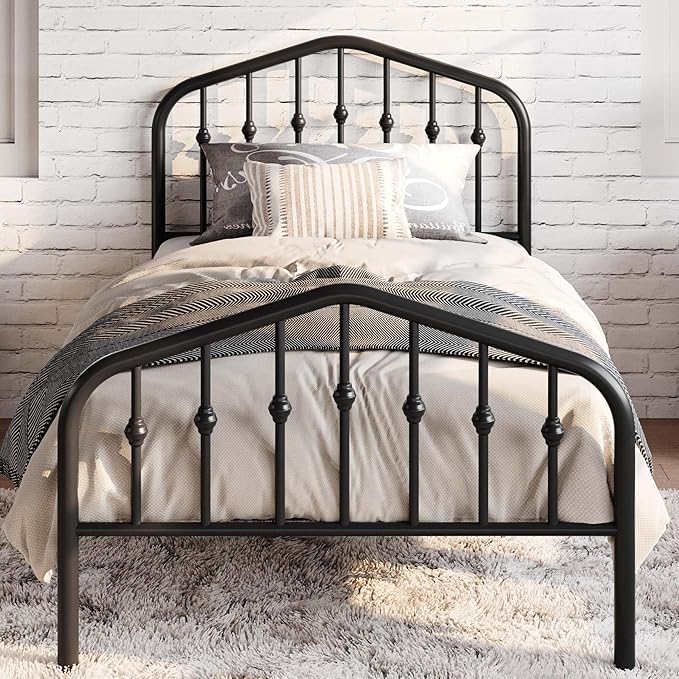 SHA CERLIN Twin Size Metal Platform Bed Frame with Victorian Style Wrought Iron-Art Headboard/Footboard, No Box Spring Required, Black