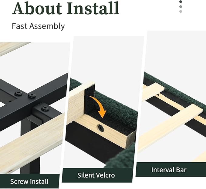 - No Spring Box Required: Our platform bed allows you to say goodbye to the spring box. The durable slats provide direct support for your mattress. The slats are connected with Velcro to effectively prevent noise and simplify installation