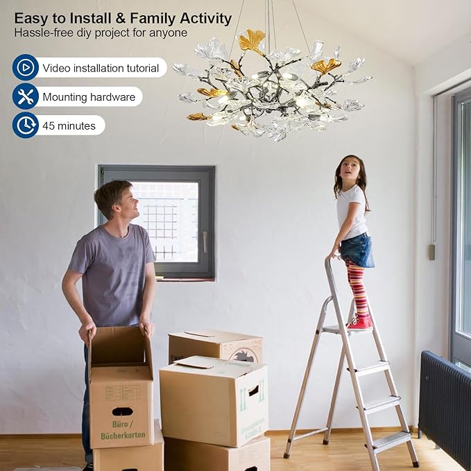 - After-sales Guarantee: As a professional light fixture seller, we are committed to providing high-quality services to customers. If you have any questions about ginkgo leaf chandeliers (such as: glass damage, missing accessories, installation, etc.), please contact us, we will solve the problem for you in a short time.