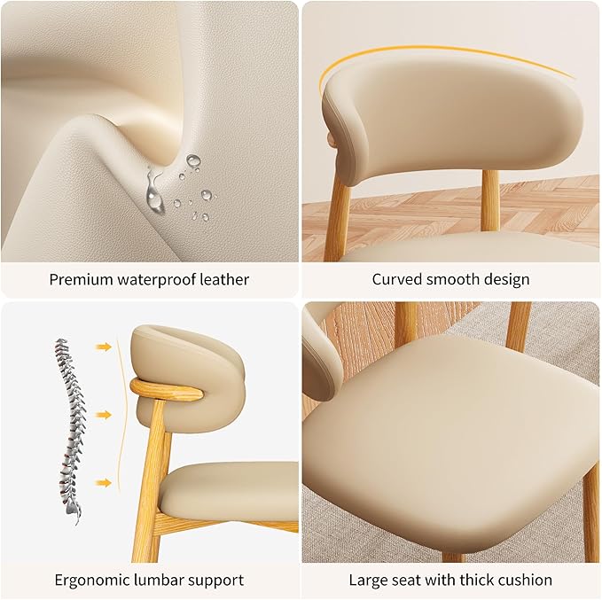 Kitchen Dining Chairs Set of 4 Modern Upholstered Leather Farmhouse Dining Room Chair with Metal Legs, Khaki