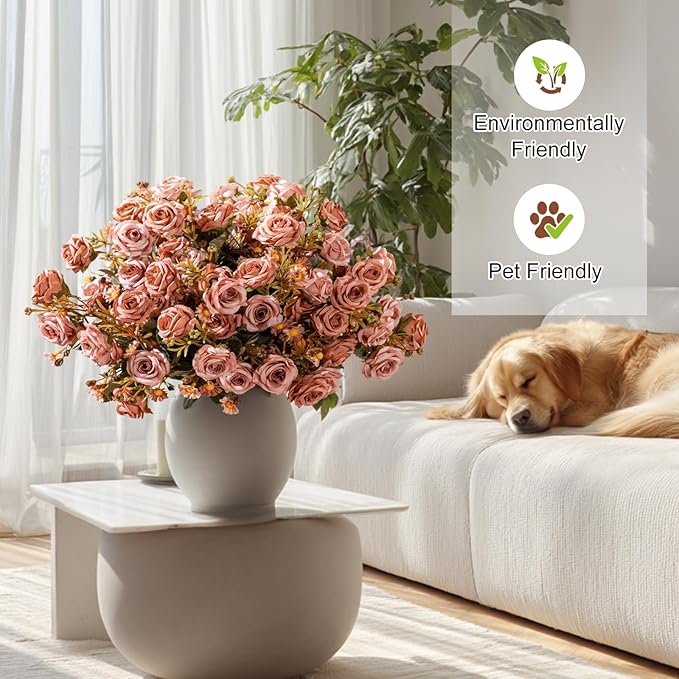- LOW MAINTENANCE AND SAVE YOUR TIME: Artificial rose flowers stay bright and beautiful all year round, no watering or pruning needed. It's like having a perpetual summer in your garden. Fake flowers plant add that perfect pop of color and elegance to your home without any of the maintenance and wouldn't attract bugs.