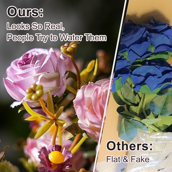 - LOW MAINTENANCE AND SAVE YOUR TIME: Artificial rose flowers stay bright and beautiful all year round, no watering or pruning needed. It's like having a perpetual summer in your garden. Fake flowers plant add that perfect pop of color and elegance to your home without any of the maintenance and wouldn't attract bugs.