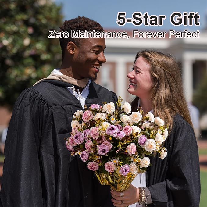 - REALISTIC ARTIFICIAL FLOWER: The bundles come in a variety of vibrant, lifelike colors that mimic real flowers to perfection. Each fake flower come as close to real as can be, offer true-to-life petal and foliage textures. The outdoor fake rose flowers are made from high-quality plastic that withstands the elements, and don't worry about them fading or wilting under the sun or rain.