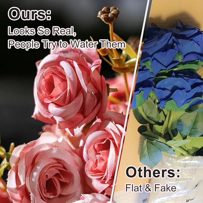 - LOW MAINTENANCE AND SAVE YOUR TIME: Artificial rose flowers stay bright and beautiful all year round, no watering or pruning needed. It's like having a perpetual summer in your garden. Fake flowers plant add that perfect pop of color and elegance to your home without any of the maintenance and wouldn't attract bugs.