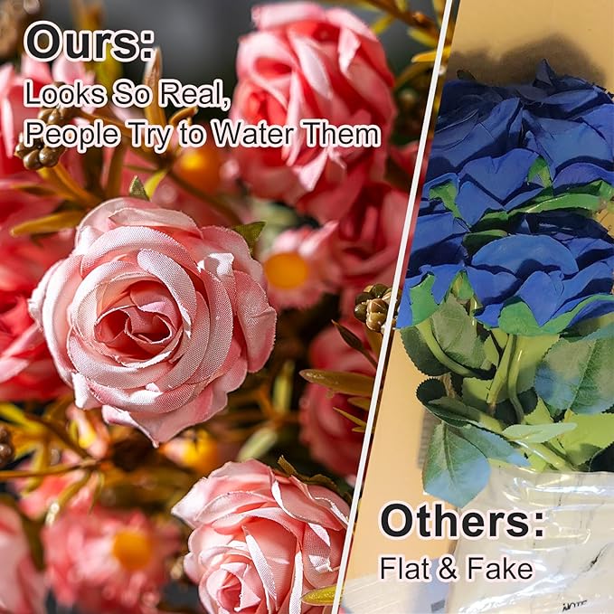 - LOW MAINTENANCE AND SAVE YOUR TIME: Artificial rose flowers stay bright and beautiful all year round, no watering or pruning needed. It's like having a perpetual summer in your garden. Fake flowers plant add that perfect pop of color and elegance to your home without any of the maintenance and wouldn't attract bugs.