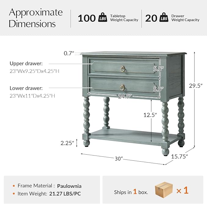 - Classic Vintage Design: Distressed finish paired with elegant turned spindle legs and antique brass ring pulls adds a cozy, nostalgic touch to your bedroom, complementing farmhouse, cottage, or shabby-chic decor effortlessly.