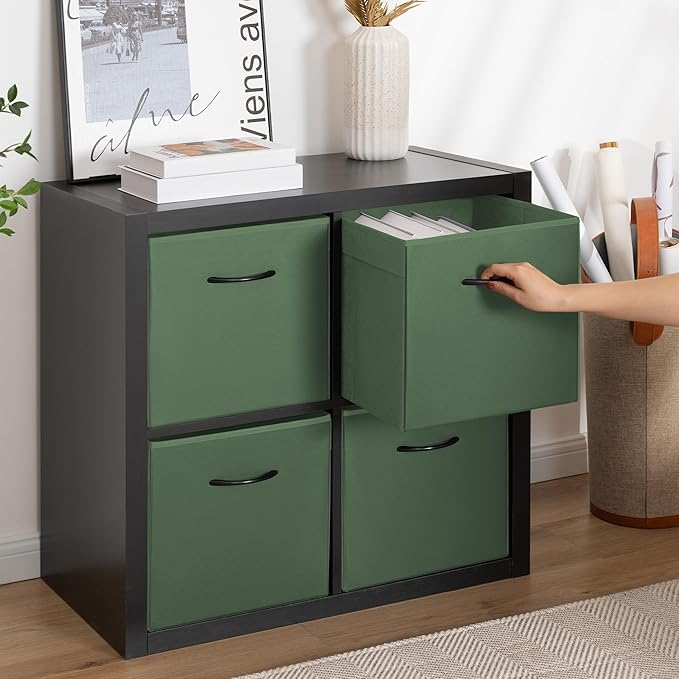 StorageWorks Green Storage Cubes, 13x13 Storage Cube Bins with Handle, Cube Storage Organizer Bins for Shelves and Closet, Collapsible Storage Bins, 4-Pack