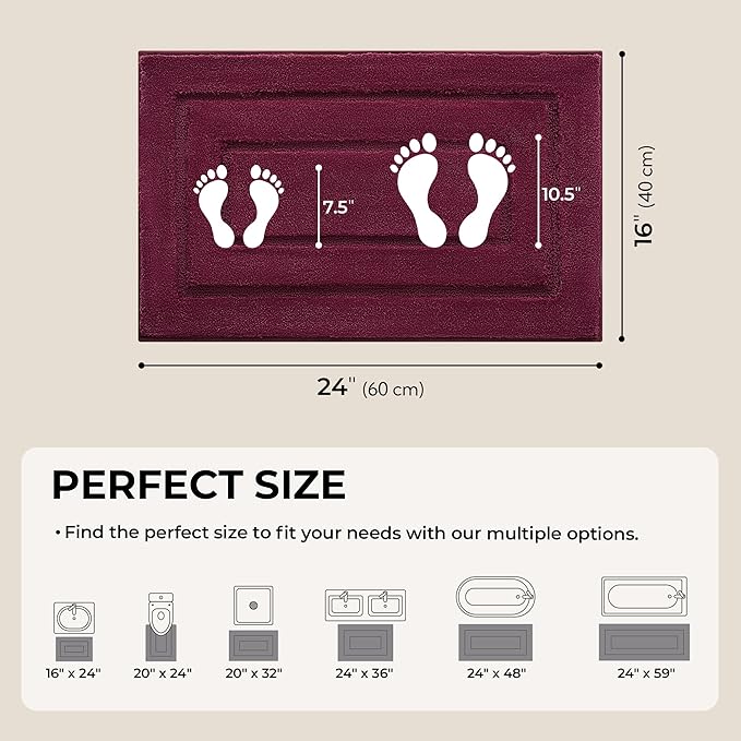 GRANNY SAYS Bathroom Rugs Non Slip, 16" x 24", Bath Rugs for Bathroom Washable, Bath Mats for Floor, Microfiber Bath Mat for Tub, Absorbent Bath Rugs for Shower Room, Strawberry Red