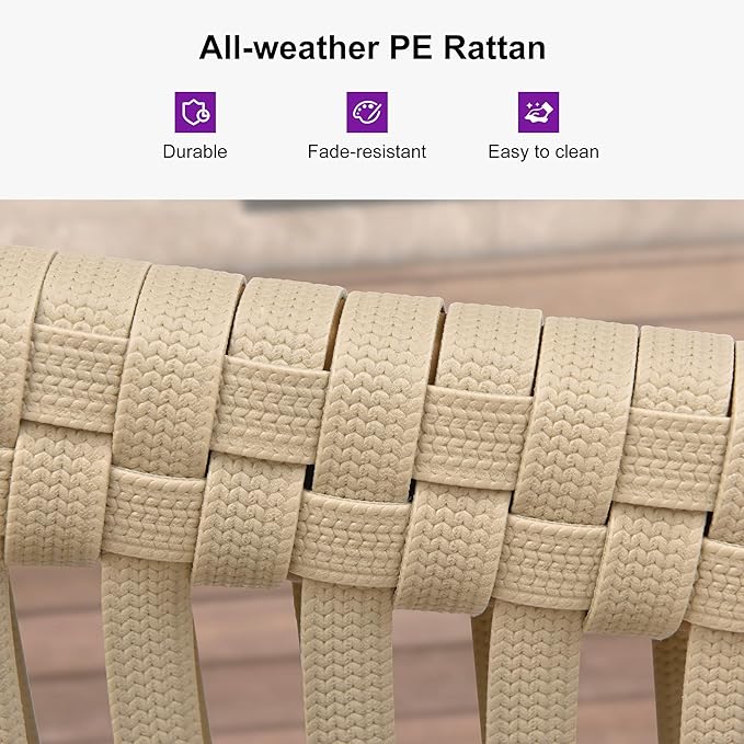 - Elegantly Simple Design: All-weather PE rattan woven chairs and X-structured table blend elegant aesthetics with long-lasting support perfectly.