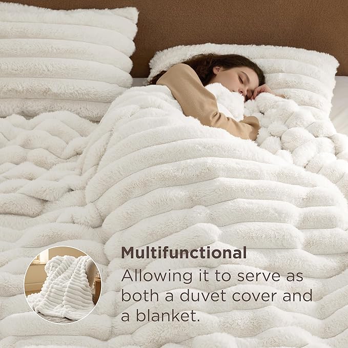 - Cozy Warmth: This textured duvet cover set boasts incredibly soft faux rabbit fur, keeping you warm and cozy all night long during this winter