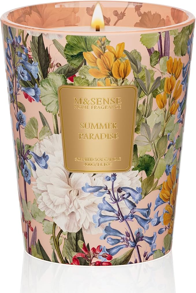 M&SENSE Citrus Water Flower Scented Candles, Soy Natural Wax Candles 14.1oz 60H Burn Time Long Lasting, Natural Aromatherapy Calm Stress Relief, Home Fragrance Housewarming Gifts