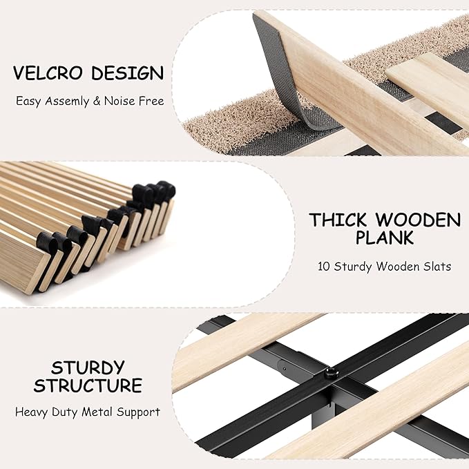 - 【Sturdy & Silent Support】 Built to last with a robust wood and alloy frame, reinforced for durability. Integrated EVA foam strips eliminate squeaks and shifts, guaranteeing a peaceful, noise-free sleep all night long