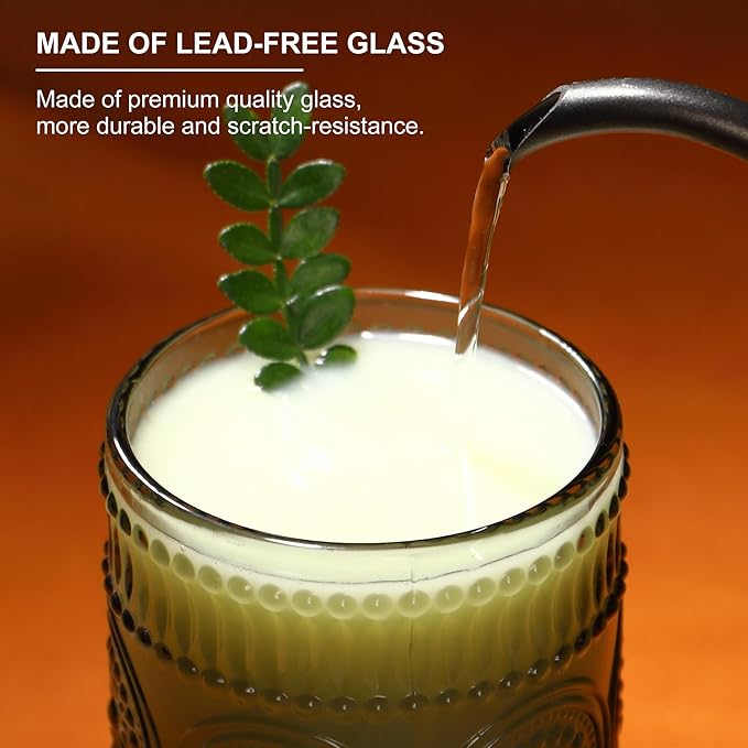 - [Premium Glass & Solid & Safe]: Crafted from high-quality soda-lime glass, these kitchen glasses are thick-walled and shatter-resistant, making them more solid than ordinary glassware. The sturdy base ensures stability, preventing accidental tipping and spills. These hobnail drinking glasses are safe for both hot and cold beverages. The smooth surface resists stains and odors, allowing for effortless cleaning—whether hand-washed or dishwasher-safe for convenience.