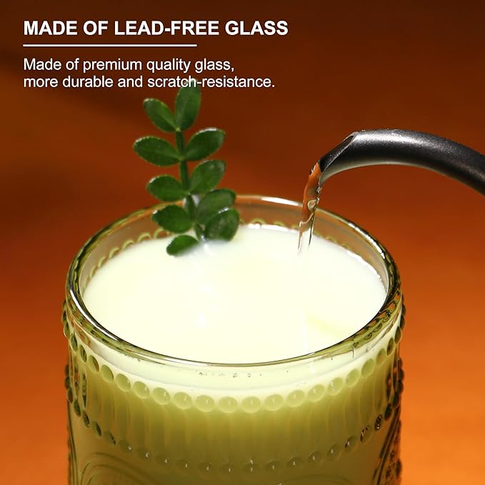 - [Premium Glass & Solid & Safe]: Crafted from high-quality soda-lime glass, these kitchen glasses are thick-walled and shatter-resistant, making them more solid than ordinary glassware. The sturdy base ensures stability, preventing accidental tipping and spills. These hobnail drinking glasses are safe for both hot and cold beverages. The smooth surface resists stains and odors, allowing for effortless cleaning—whether hand-washed or dishwasher-safe for convenience.