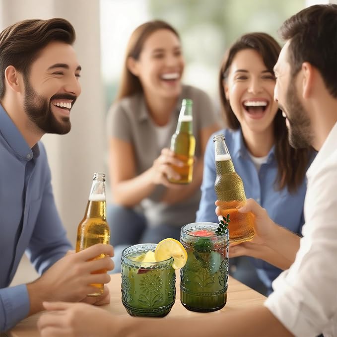 - [Versatile for All Beverages]: 2 Sizes for Every Occasion. This set includes two practical sizes to suit different drinks: 12oz vintage glassware: Ideal for beer, iced tea, juice, soda, milk or water—great for everyday use. 20oz water glasses: Perfect for cocktails, whiskey, espresso, or wines—adding elegance to your drink experience. Whether for casual family meals, parties, or bar use, these glasses meet all your serving needs!