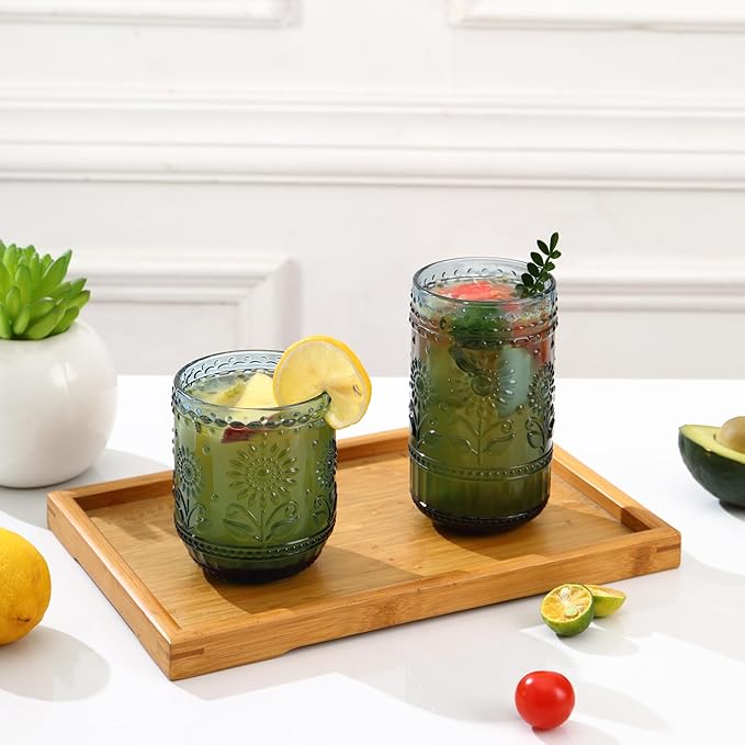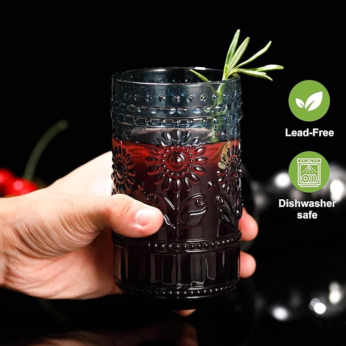 - [Elegant Floral Embossed Design]: A Touch of Vintage Charm. Each vintage drinking glasses features intricately embossed floral patterns, meticulously crafted with a special technique for a luxurious, textured finish. The vintage-inspired design adds sophistication to any table setting, turning ordinary meals into romantic dinners or festive gatherings. These cocktail glasses are perfect for enhancing your home décor, these glasses are not just functional but also aesthetic statement pieces.