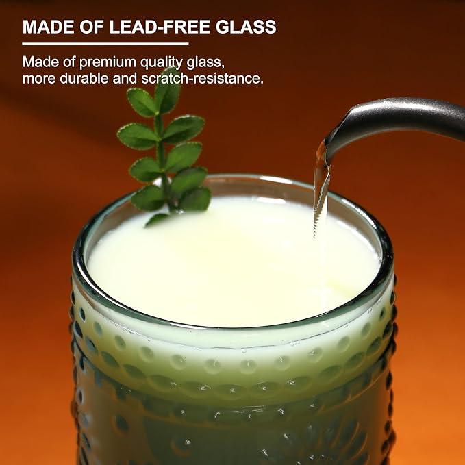 - [Premium Glass & Solid & Safe]: Crafted from high-quality soda-lime glass, these kitchen glasses are thick-walled and shatter-resistant, making them more solid than ordinary glassware. The sturdy base ensures stability, preventing accidental tipping and spills. These hobnail drinking glasses are safe for both hot and cold beverages. The smooth surface resists stains and odors, allowing for effortless cleaning—whether hand-washed or dishwasher-safe for convenience.