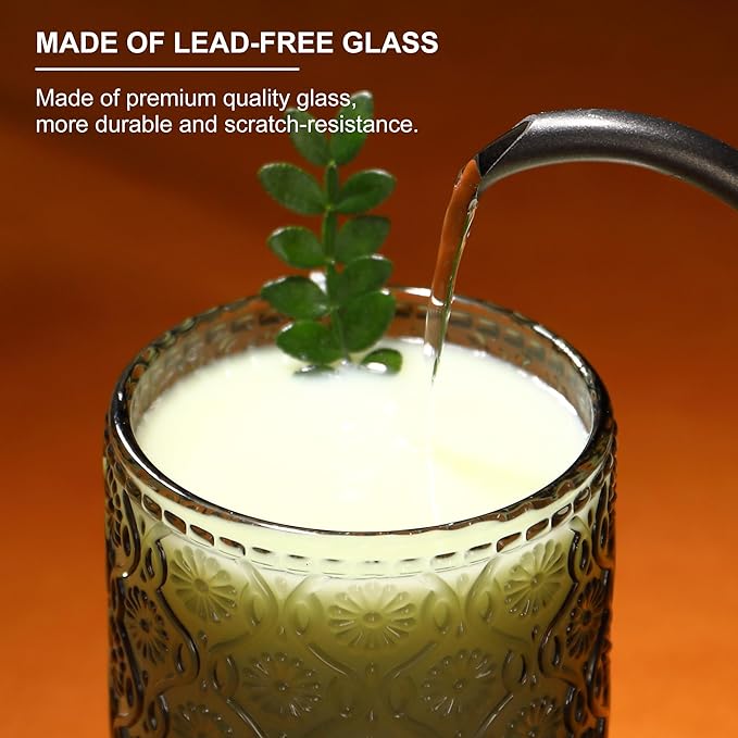 - [Elegant Floral Embossed Design]: A Touch of Vintage Charm. Each vintage drinking glasses features intricately embossed floral patterns, meticulously crafted with a special technique for a luxurious, textured finish. The vintage-inspired design adds sophistication to any table setting, turning ordinary meals into romantic dinners or festive gatherings. These cocktail glasses are perfect for enhancing your home décor, these glasses are not just functional but also aesthetic statement pieces.