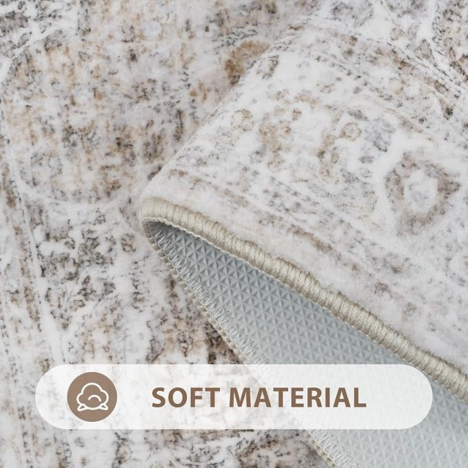Uphome Bathroom Rugs Runner, Distressed Farmhouse Boho Light Khaki Bath Mat, Non Slip Washable Long Bath Rugs, Vintage Traditonal Soft Velvet Bathroom Runner for Bathtub Sink Shower, 20x60 inch