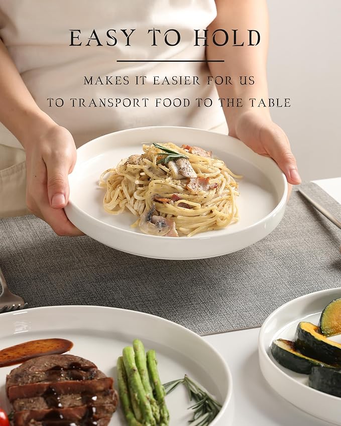- Space Saving: The stackable design make these plates and bowls set stack easily for storage, saving space in your kitchen cabinets. They have a edge in them that helps keep the food in the plate, and easy to hold, so convenient and attractive in your kitchen