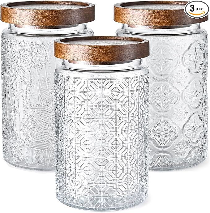 3-Pack 32oz Glass Jar With Airtight Lid,Kitchen Canisters For Countertop,Coffee Sugar Container Set,Pantry Glass Storage Containers For Flour,Candy,Loose Tea,Snack jar
