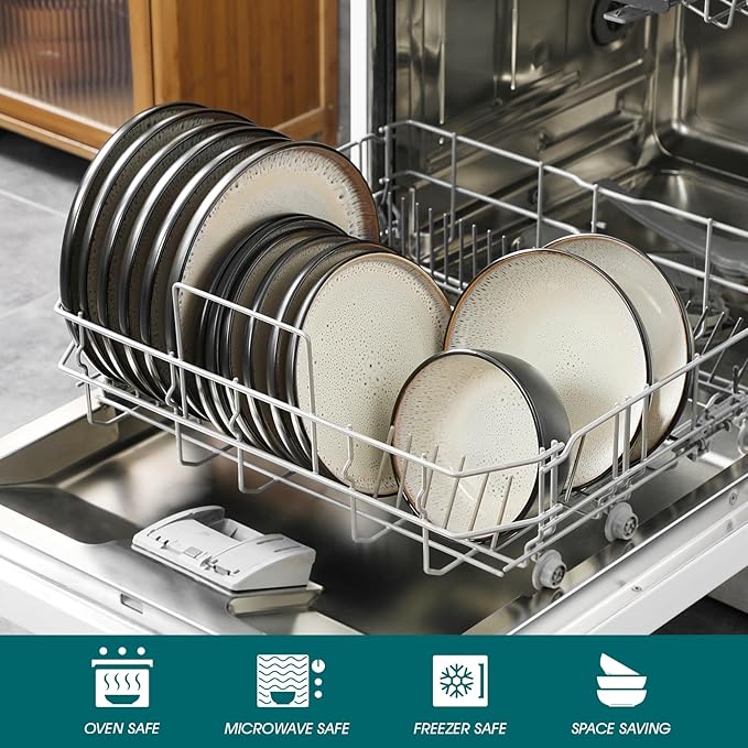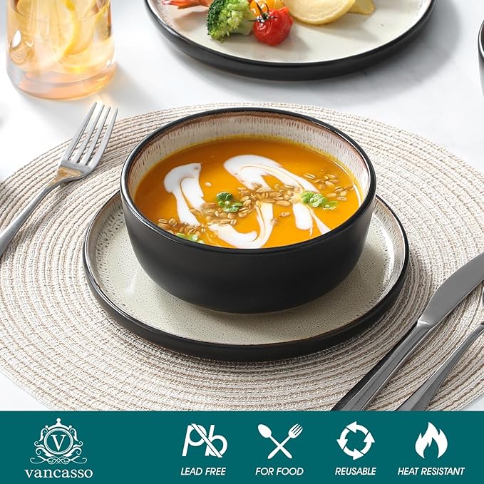 - Microwave & Dishwasher Safe – Thanks to its high-fired (2548°F+) mineral glaze, vancasso plates and bowls sets features an ultra-stable, moisture-resistant surface. The dense glaze structure prevents thermal shock and dulling or chemical wear, outperforming regular ceramics in long-term durability.