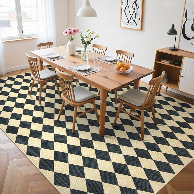 - 【Modern Diamond Checkered Rug】Elevate any space with this 8x10 rug. Its timeless diamond pattern creates visual depth, making rooms feel larger while adding structured elegance. The versatile checkered design blends modern and traditional styles. Perfect for anchoring living rooms, dining rooms, bedrooms and areas with high traffic crowds. A neutral palette ensures easy decor pairing, transforming floors with refined geometry