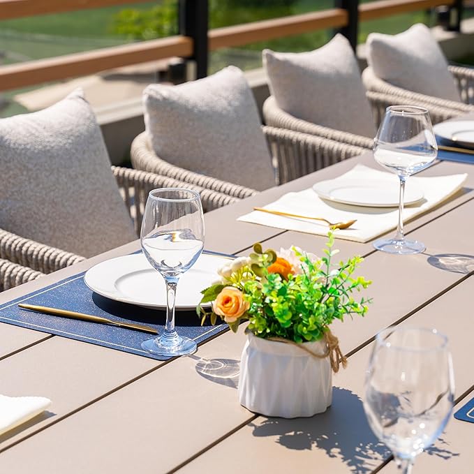 PURPLE LEAF Outdoor Dining Table Set of 15, Aluminum Outdoor Patio Table and Chairs Set with Olefin Cushions, Patio Furniture Set for Garden or Deck, Beige