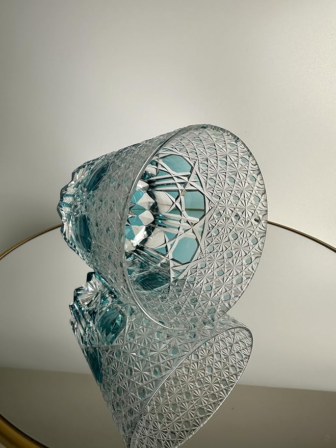 - Refined Japanese-Style Craftsmanship – Inspired by traditional Edo Kiriko aesthetics, each glass features meticulous hand-cut details in a faceted blue “sugar cube” pattern.