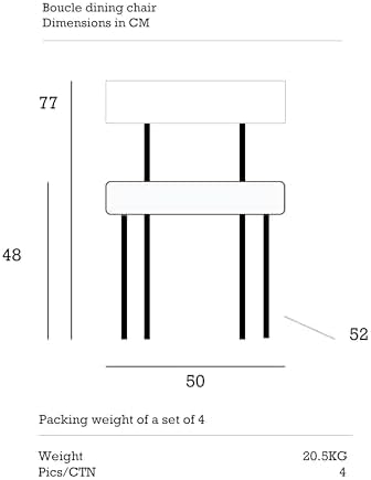 - Compact and Space-Saving Design: These chairs have well-proportioned dimensions of W 50 cm x D 52 cm x H 77 cm (H 48 cm from the floor to the seat), providing ample seating while easily fitting under the table after meals. This helps conserve floor space, ensuring your dining area feels open and inviting rather than cramped.