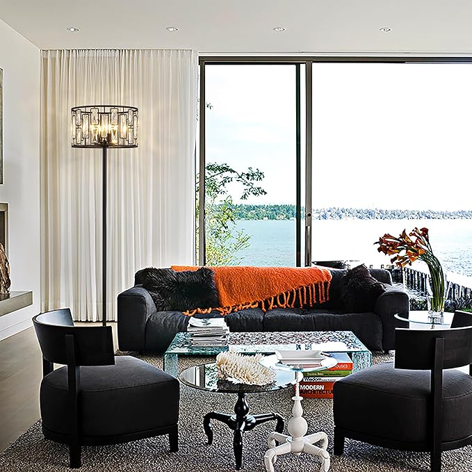 - Wide Application: Perfect for the living room, bedroom, corner or office, the black standing lamp takes up little space and has an elegant vintage look. The premium modern crystal floor lamp could meet your practical needs for lighting or household decoration in the study, office, dorm, kids' room, etc.