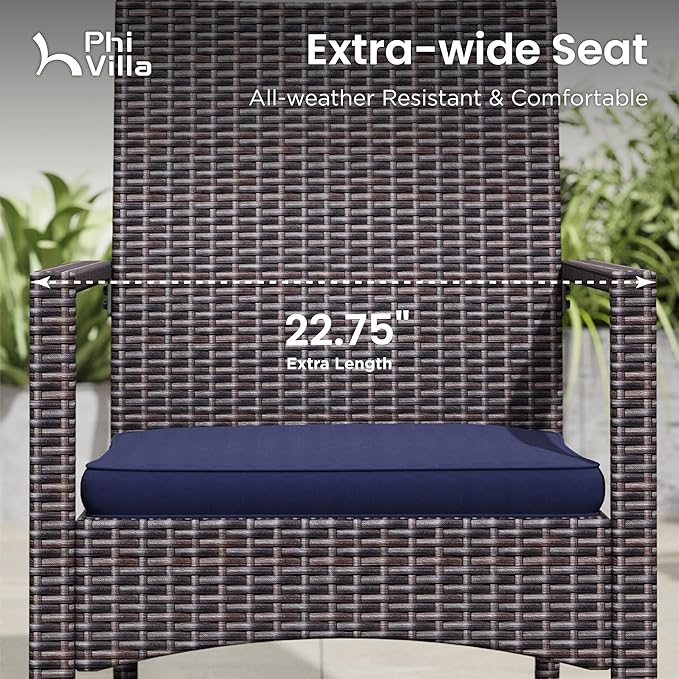 - Rattan Chairs with Cushions: Made of tightly woven weather-resistant wicker, UV & fade resistant. Natural texture wicker material with strengthened dual-wrapped edges, much more durable and stronger than normal rattan material. With 1.97" thick padded cushion, providing comfortable support for long time sitting.
