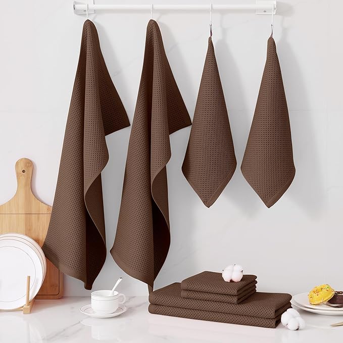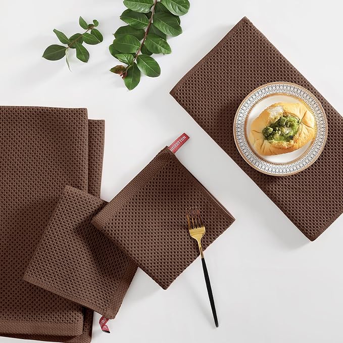 Homaxy 100% Cotton Kitchen Towels and Dishcloths Set, 12 x 12 Inches and 13 x 28 Inches, Set of 8 Bulk Kitchen Towels Set, Ultra Soft Absorbent Dish Cloths for Washing Dishes, Coffee