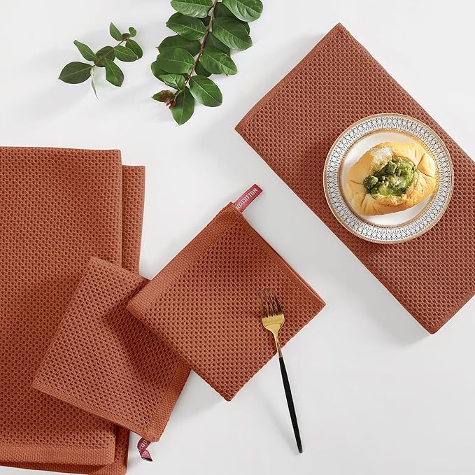 Homaxy 100% Cotton Kitchen Towels and Dishcloths Set, 12 x 12 Inches and 13 x 28 Inches, Set of 8 Bulk Kitchen Towels Set, Ultra Soft Absorbent Dish Cloths for Washing Dishes, Rust