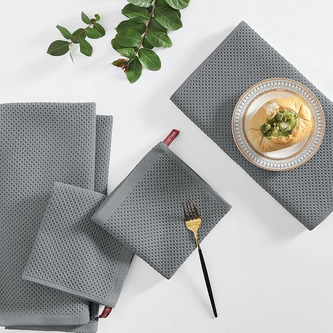 Homaxy 100% Cotton Kitchen Towels and Dishcloths Set, 12 x 12 Inches and 13 x 28 Inches, Set of 10 Bulk Kitchen Towels Set, Ultra Soft Absorbent Dish Cloths for Washing Dishes, Grey