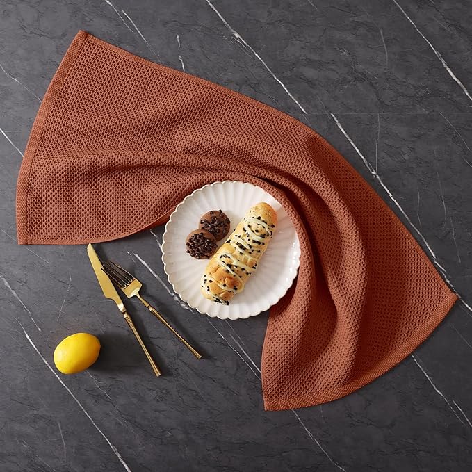Homaxy 100% Cotton Kitchen Towels and Dishcloths Set, 12 x 12 Inches and 13 x 28 Inches, Set of 10 Bulk Kitchen Towels Set, Ultra Soft Absorbent Dish Cloths for Washing Dishes, Rust