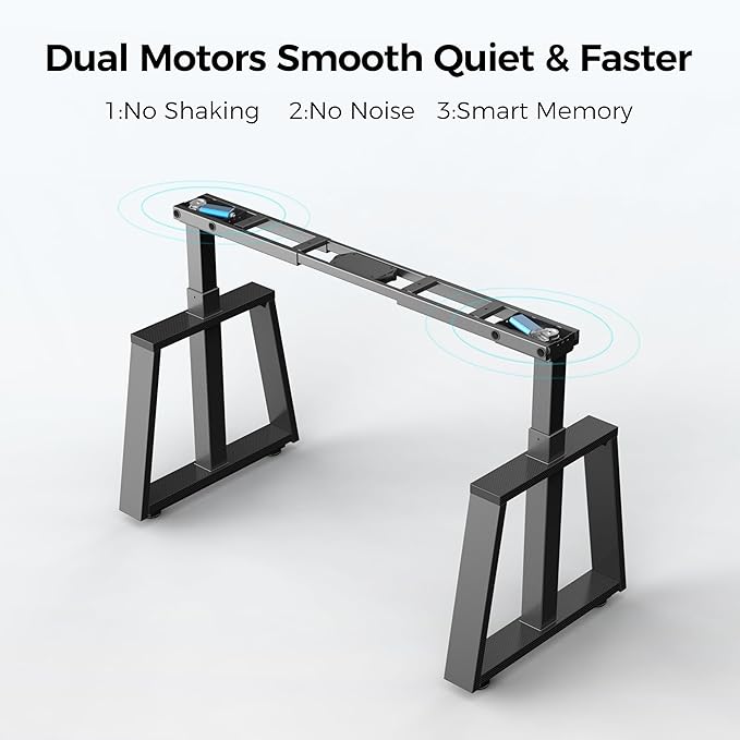 - Healthy Way to Work: Your workspace should not only inspire productivity but also permit a healthier way to work. The Eureka adjustable height desk is equipped with a dual motor and 2-stage legs that you can enjoy smoothly, low decibel conversion from sitting to standing.Smart anti-collision technology with built-in HALL SENSOR CONTROL ensures safe use.