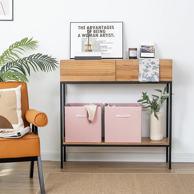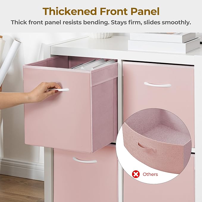StorageWorks Pink Storage Cubes, 13x13 Storage Cube Bins with Handle, Cube Storage Organizer Bins for Shelves and Closet, Collapsible Storage Bins, 4-Pack