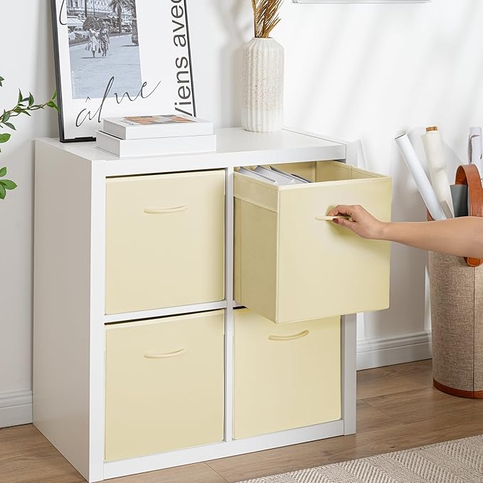 StorageWorks Beige Storage Cubes, 13x13 Storage Cube Bins with Handle, Cube Storage Organizer Bins for Shelves and Closet, Collapsible Storage Bins, 4-Pack